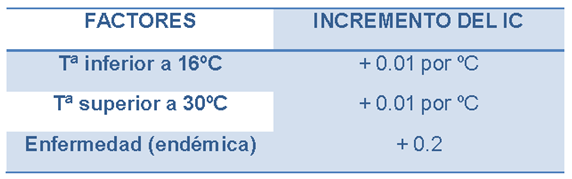 Cuadro 1: Influencia de la temperatura y enfermedad en el IC