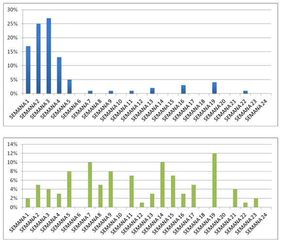 Podemos observar en el porcentaje de bajas sobre el total de bajas dos escenarios totalmente distintos, a la hora de abordar el problema en un cebadero